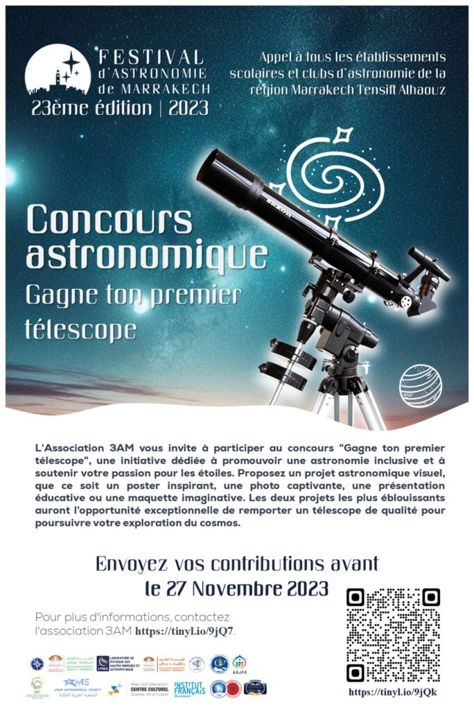 The 3AM association invites you to participate in the “Win Your First Telescope” competition, an initiative dedicated to promoting inclusive astronomy and supporting your passion for the stars. Submit a visual astronomical project, whether it’s an inspiring poster, a captivating photo, an educational presentation, or an imaginative model. The two most dazzling projects will have the exceptional opportunity to win a quality telescope to continue your exploration of the cosmos.