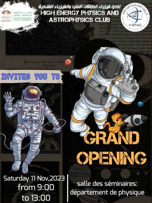 High energy physics and astrophysics club is organizing an open door on 11th November at the Semlalia Faculty of Sciences.